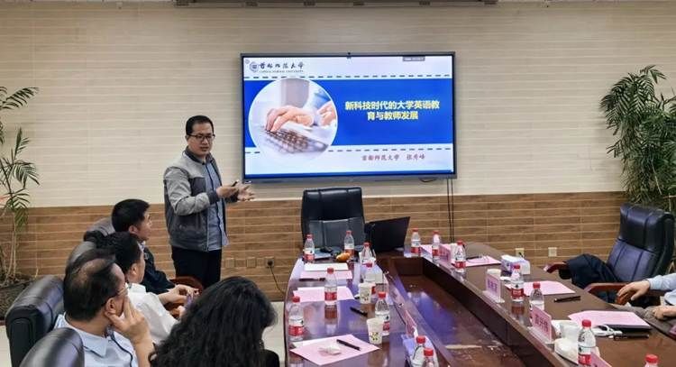 首都师范大学大学英语教研部主任张秀峰教授围绕新科技时代的大学英语教育与教师发展,着重探讨了新文科背景下外语教师应如何处理信息与人文之间的关系;此外,张教授还详细介绍了首都师范大学的《大学英语》课程体系。