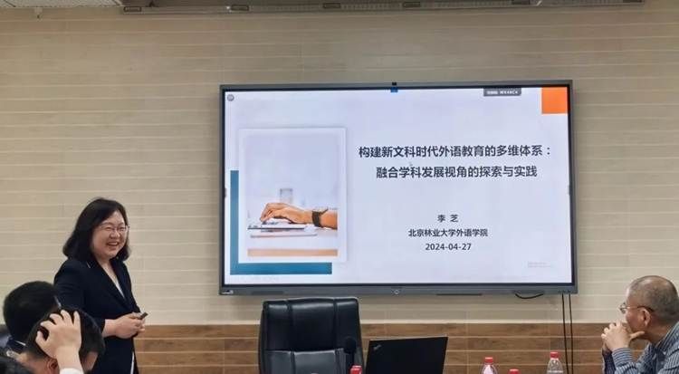 北京林业大学外语学院院长李芝教授从融合学科发展视角探讨了如何构建新文科时代外语教育的多维体系,特别是新文科时代的教育定位、外语学科的改革与实践、以及在线课程的数字资源开发等问题。