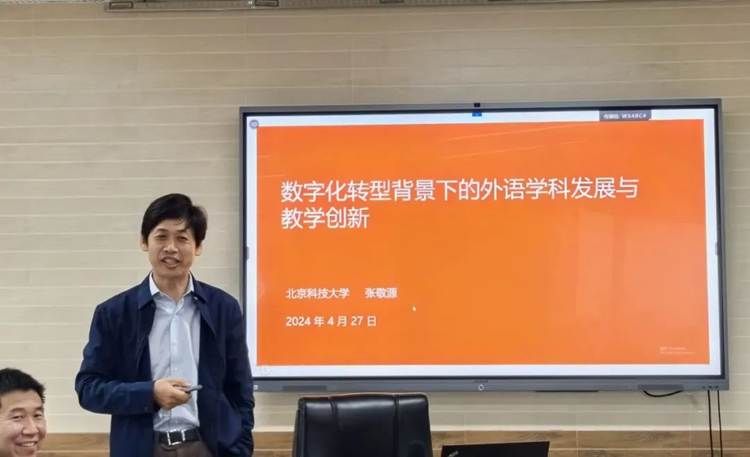 北京科技大学外国语学院原院长、教育部大学外语教指委委员张敬源教授聚焦数字化转型背景下的外语学科发展与教学创新,指出在技术时代背景下,外语学科应该思考如何革新、重塑,并从数字化的角度切入,指出了面向未来的外语核心能力培养这一关键问题。