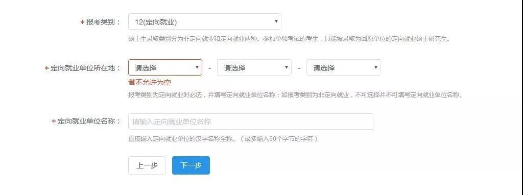 请注意,在“报考类别”中选择“定向就业”。