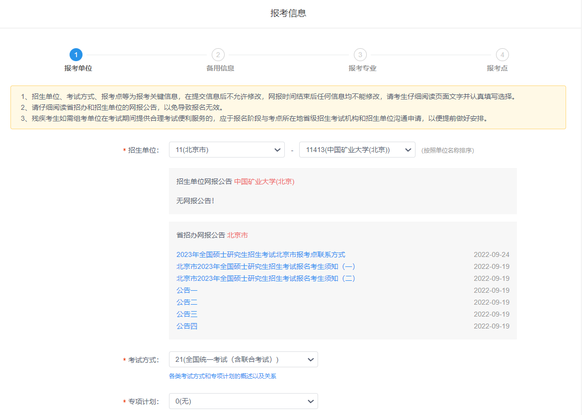 4、选择招生单位、考试方式