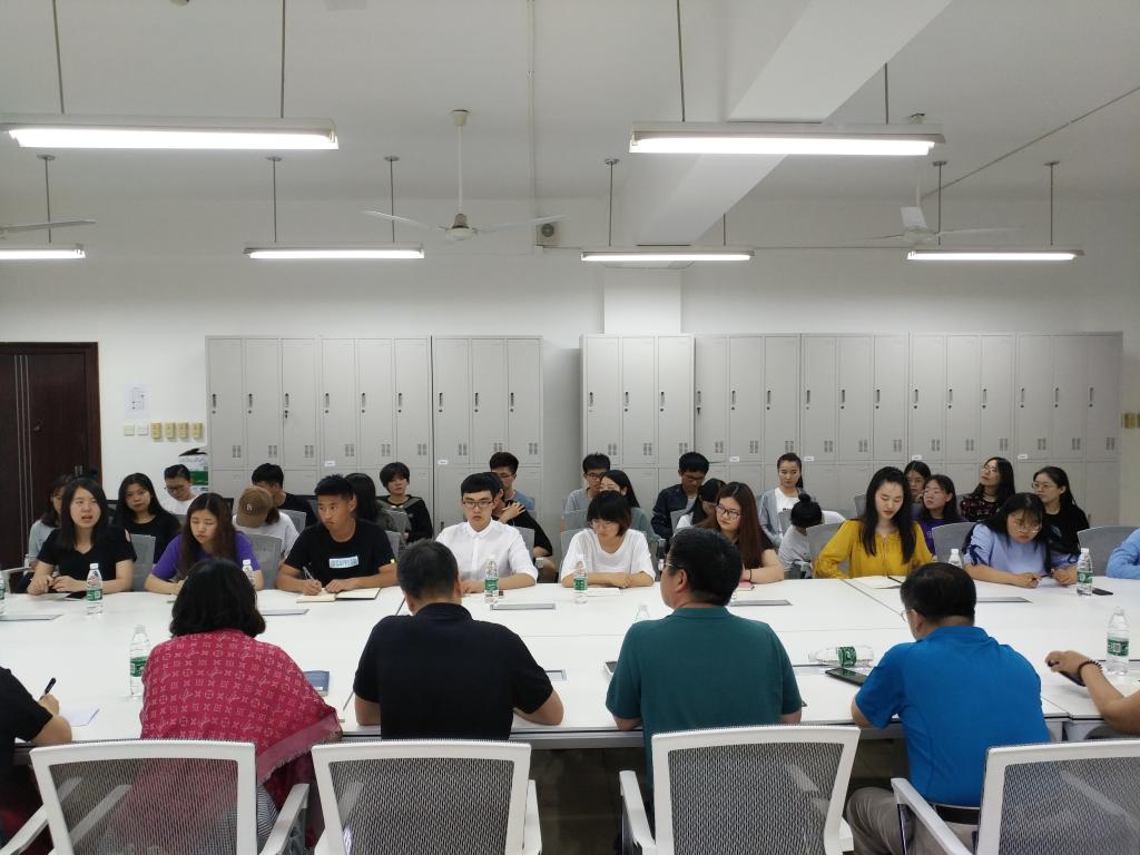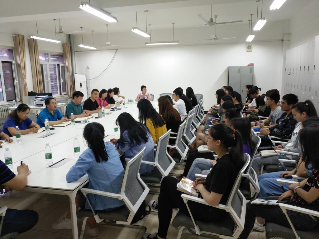 为进一步了解我院师生教学动态,加强优良学风建设,提高教学质量,配合本学期学院期中教学检查工作和学风建设活动的开展,5月30日晚七点,我院在沙河校区一教212召开17级本科生学生座谈会,广泛征求学生对教学及学生工作的意见和建议。院长殷召良,党委书记董会泽,副院长许卉艳、刘金程,行管、法学、英语系主任,17级本科班主任,辅导员及教学秘书,17级学生代表参加了座谈,座谈会由副院长刘金程主持。