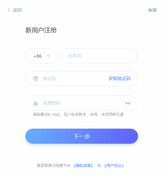 1.1)若是初次登录:点击选择【新用户注册】,输入手机号获取验证码,并设置登录密码,然后输入单位UC码:296958,然后点击下一步进入完善信息界面,输入学号和姓名,点击验证完成注册登录。