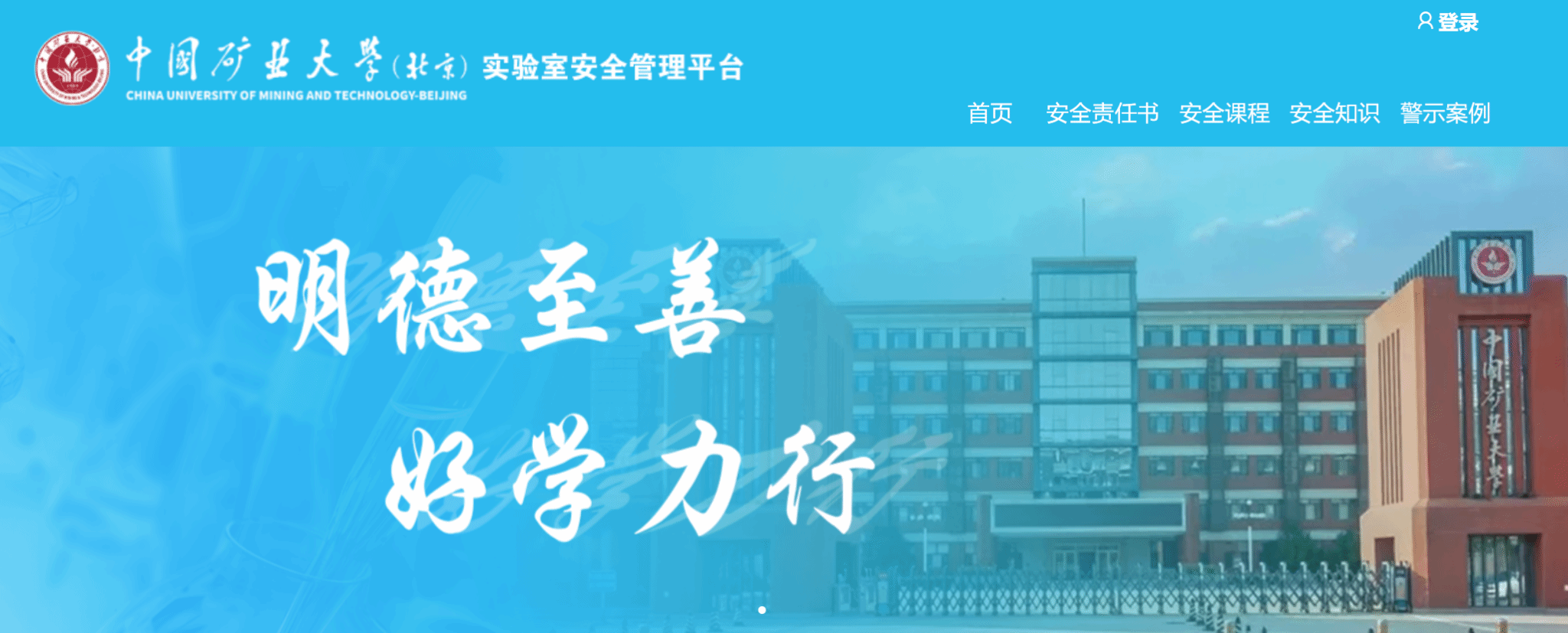 打开中国矿业大学(北京)实验室安全准入平台(https://cumtblas.mh.chaoxing.com),在首页选择“登录”进入用户界面。