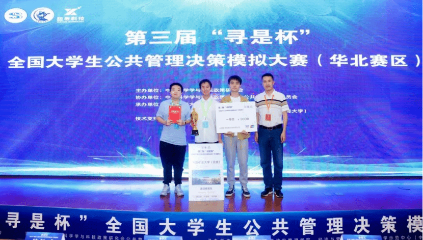 5月25日至26日,由中国科学学与科技政策研究会主办,中央财经大学承办的第三届“寻是杯”全国大学生公共管理决策模拟大赛(华北赛区)顺利举行。我院组成了以行管22级本科生曹瑞涛、叶景航、邹高鑫为团队成员,戚鹏、谢起慧为指导老师的“源深精英”代表队参赛,并取得本次比赛一等奖的佳绩。