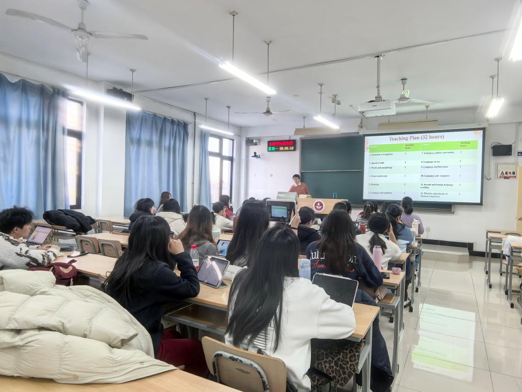 上午8时,杨书记与刘院长提前来到教学楼,先后巡查公共管理系杨璐璐老师主讲的《土地资源管理》、外语系刘秀梅老师主讲的《语言学导论》、法学系杨俊杰老师主讲的《国际金融法(双语)》等课程,对教师到岗、学生出勤、课堂秩序及教学设施运行等进行了细致检查。从检查情况看,各教室教学秩序井然,任课教师均提前到岗,备课充分,授课内容详实;学生精神饱满,到课率高,课堂互动积极,展现出良好的学习状态。课堂上,教师通过生动的案例讲解与学生频繁互动,课堂氛围活跃;学生均按时到课,认真记录笔记,体现了新学期师生昂扬的精神面貌。