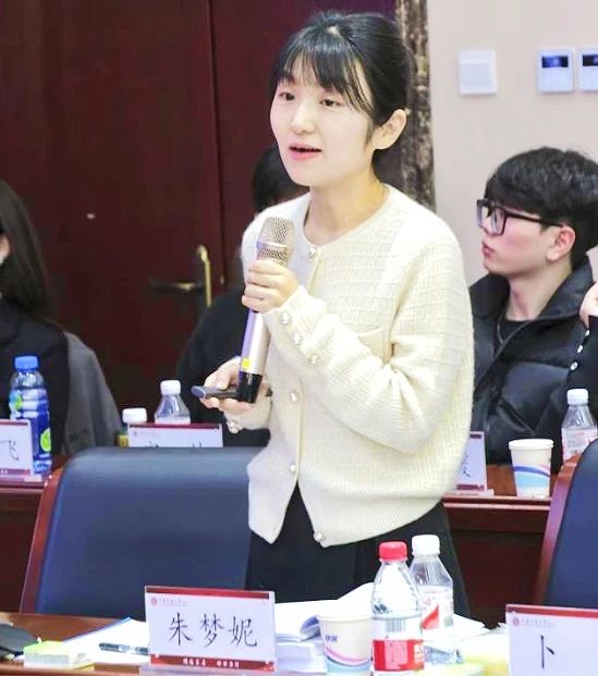 会议第二阶段,法学系副主任朱梦妮围绕学科基本情况、办学条件、人才培养及成效、教研成果与服务、总结与展望五个方面向专家组详细汇报了自2020年以来法律硕士学位授权点的建设和发展成效。
