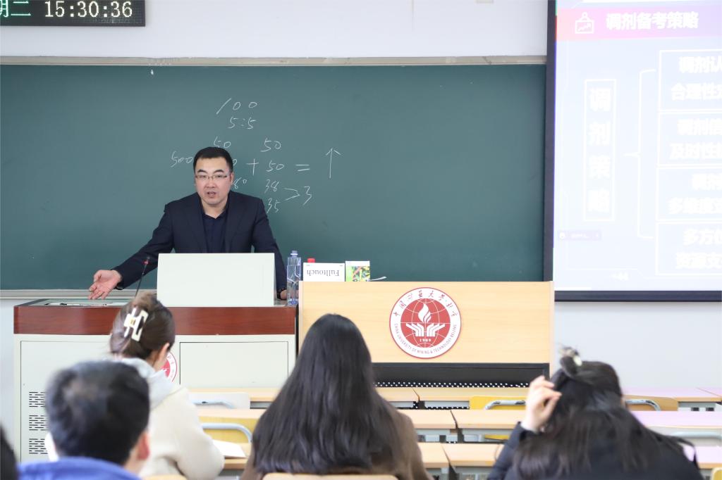 董凤姣对韩啸的到来表示热烈欢迎,对韩啸老师的精彩分享表示衷心感谢。同时她也提出三点建议,一是要端正态度,认真准备复试和调剂。二是要与学院老师及时主动沟通交流,充分利用身边资源。三是要对自己充满信心,不管考研结果如何,继续勇往直前,追逐梦想。