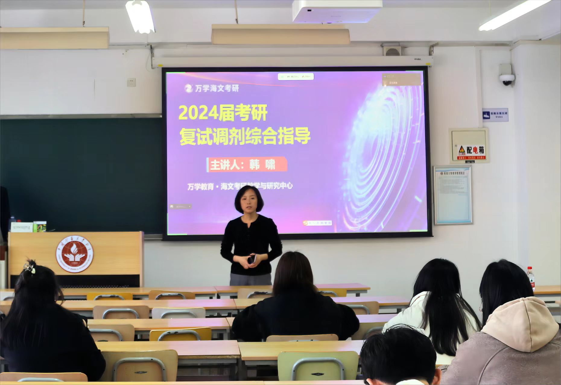 为进一步帮助学生了解2024年考研复试和调剂政策,精准把握复试要求,增强复试信心,3月12日,文法学院举办2024年考研复试调剂讲座。会议邀请韩啸老师主讲,文法学院党委副书记董凤姣出席并主持会议,辅导员戴彤,30余名考研学生线上线下参会。