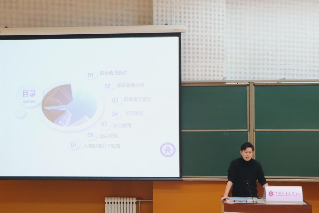 娄真从学生日常事务管理、学风建设、大学生安全教育、征兵政策宣讲、入党积极分子教育五个方面进行了全面细致的讲解,引导同学们端正学习态度、树立安全意识、了解入党流程,希望同学们度过圆满理想的大学生活。
