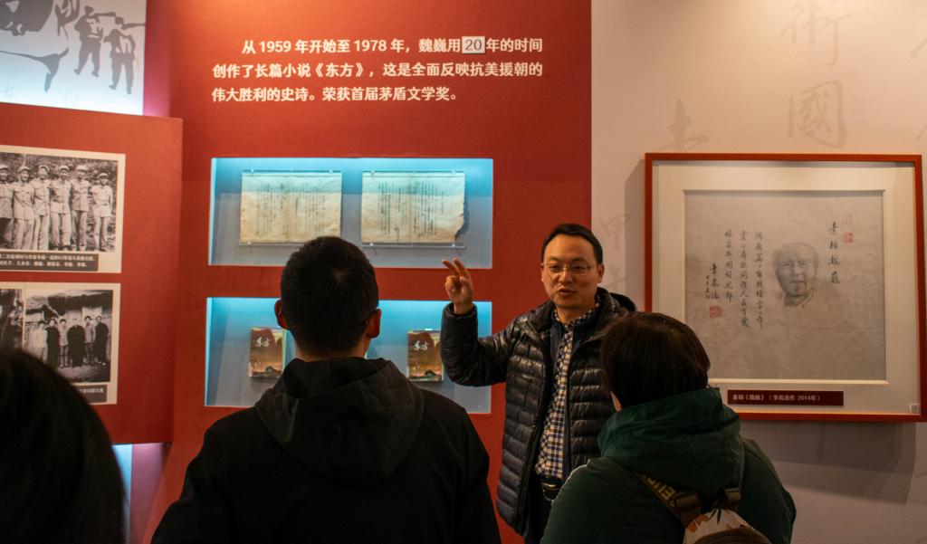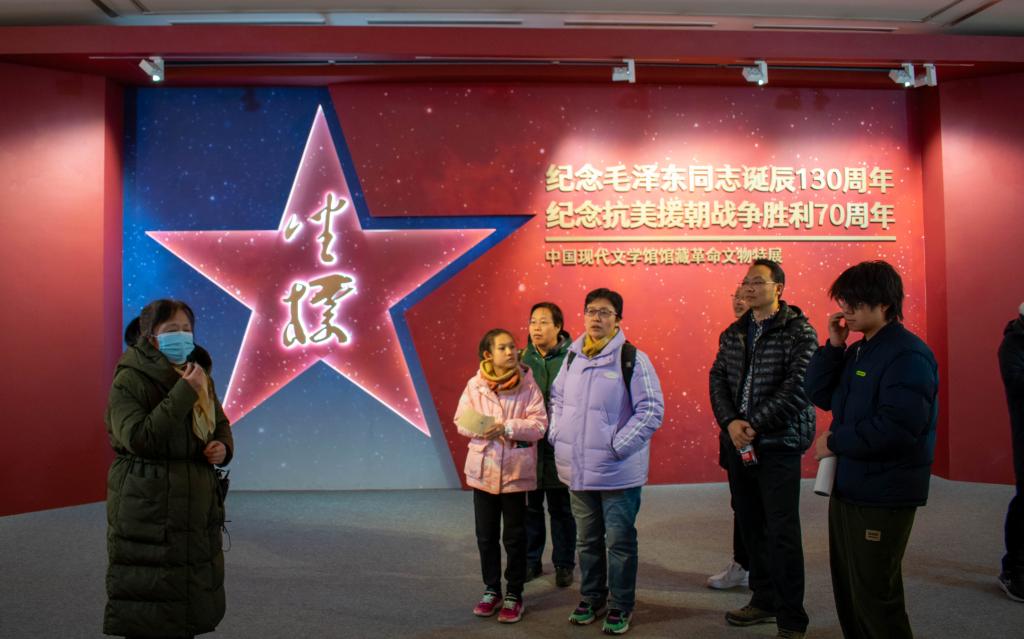 大家首先参观了文学馆为纪念毛泽东同志诞辰130周年暨抗美援朝战争胜利70周年开设的“坐标——中国现代文学馆馆藏革命文物特展”。展出以“革命文物展+文学展”的联动力量来讲述中国故事中的红色篇章。