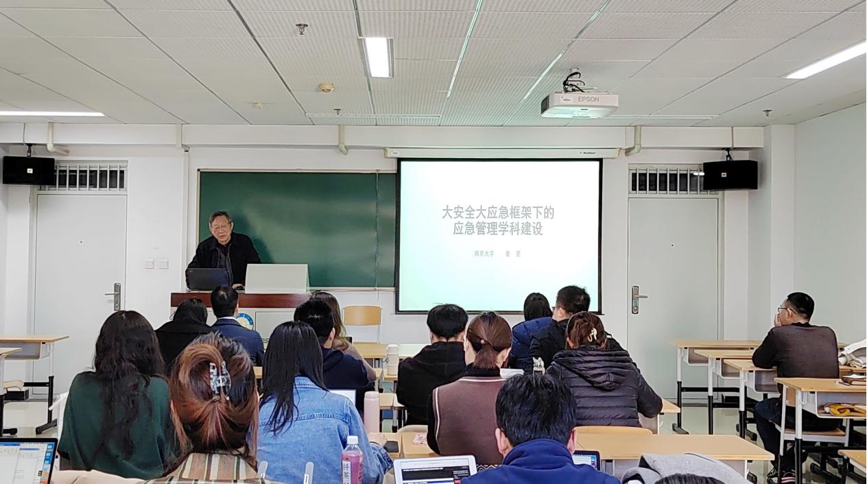 童星教授根据多年的学术研究经验,结合《公共管理学下属二级学科指导性目录》,以应急管理学科内涵及定位为切入点,深入浅出地分析了大安全大应急框架下应急管理学科建设的目标、学科群构成及未来发展图景。在师生交流互动环节,童星教授对大家所提出的问题进行了详细解答,引发了大家对于建设公共管理学科的深刻思考。
