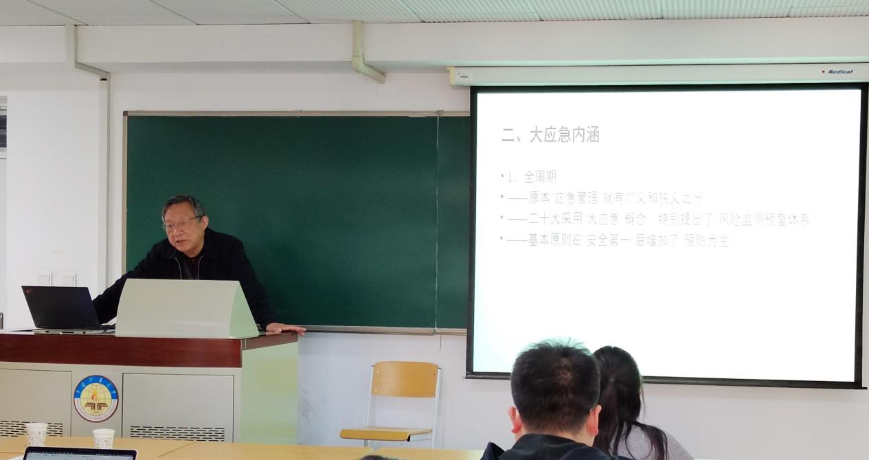 2023年11月17日,中国矿业大学(北京)文法学院第106期“方法与前沿”双周论坛在学院路校区逸夫楼716室如期举行。本次论坛邀请江苏省社会风险研究基地主任、南京大学社会风险和公共危机管理研究中心主任、南京大学政府管理学院童星教授,作题为“大安全大应急框架下的应急管理学科建设”的专题报告。文法学院院长刘金程教授、副院长谭爽教授以及文法学院公管系部分师生参加会议,论坛由谭爽教授主持。