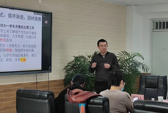 杨洪兵书记对各位老师表示热烈祝贺,并对上一阶段本科生导师在学生升学、就业过程中发挥的重要作用表示感谢,最后对接下来继续加强教学与学工联动、强化育人合力提出期望。
