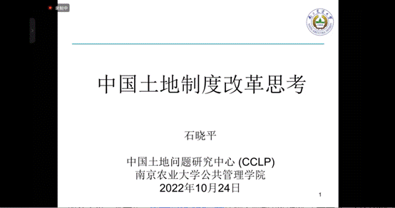 2022年10月24日晚上7点,中国矿业大学(北京)MPA名家讲堂第5期在线上举行,南京农业大学公共管理学院石晓平教授受邀为我中心师生做了主题为《中国土地制度改革思考》的讲座。MPA中心主任杨璐璐教授担任此次讲座主持,400多名MPA师生在线参与了此次讲座。
