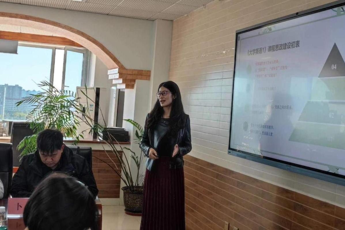古明老师对《大学英语及拓展课程教学团队建设》项目建设情况进行汇报。该项目通过不断完善日常教学管理制度,改革教学内容和方法,形成“EGP为主,EAP+ESP为辅”四位一体课程模式,持续探索线上线下混合式教学模式,改革课程评价方式,推动教学质量和教学成效稳步提高。