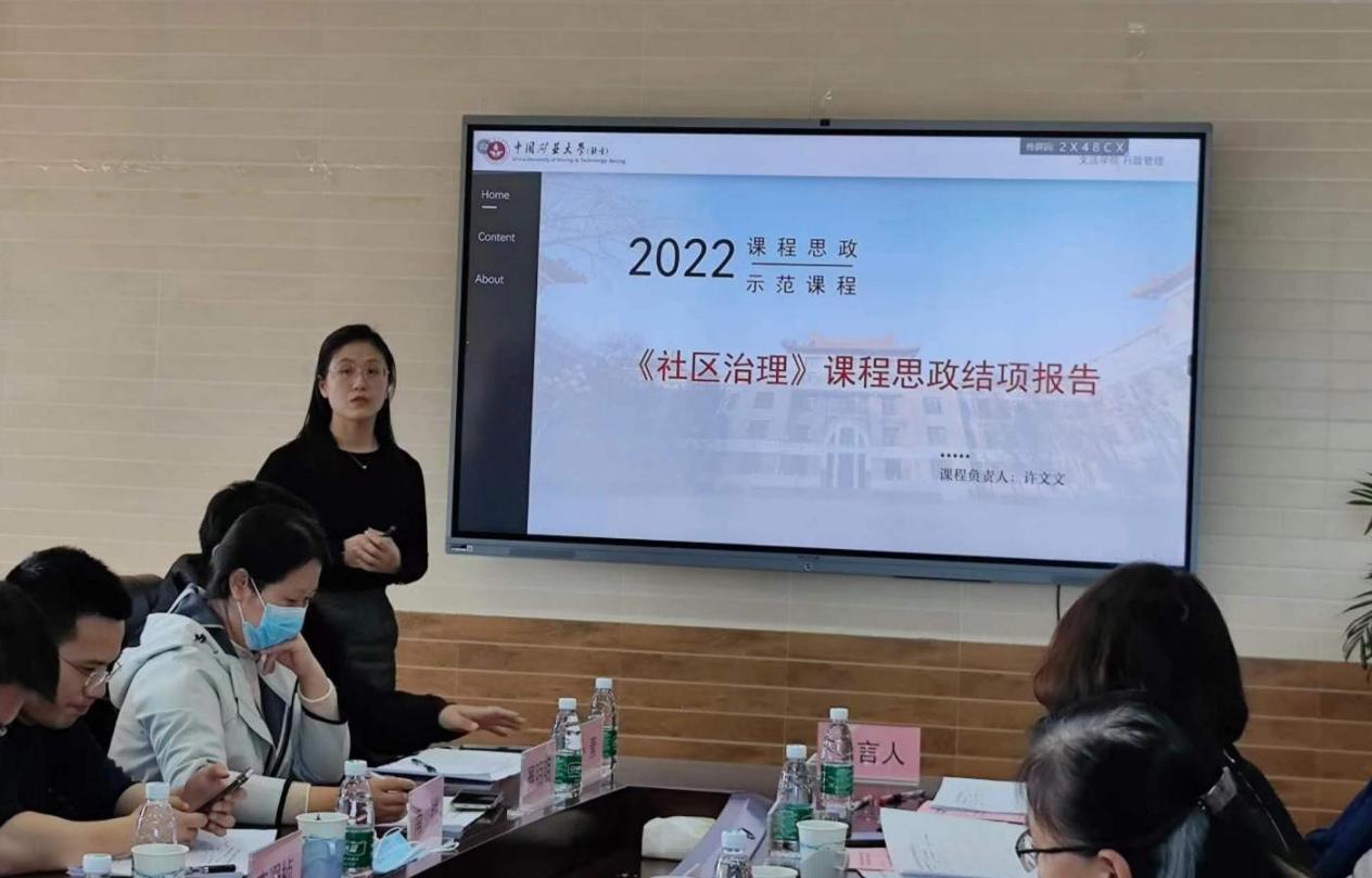 在学院“课程思政示范课项目”验收环节,李彬、许文文、李倩、杨晓华4位教师全面细致地汇报了《经济法》《社区治理》《大学英语1》《能源英语3》的课程思政建设情况以及取得的成效。