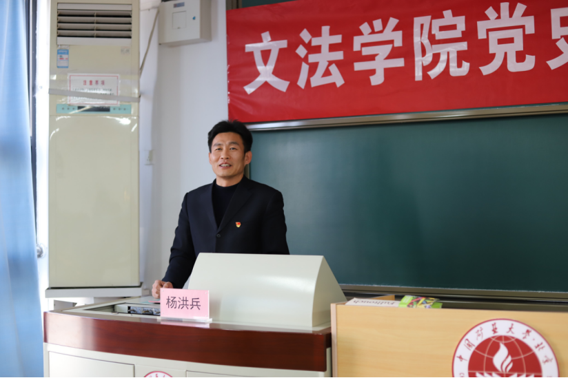 2022年1月11日下午,文法学院在学院路校区教学楼216召开党史学习教育总结大会。学校党史学习教育第三巡回指导组组长、校纪委副书记、监察处处长胡喜宽,文法学院院长殷召良,院党委书记杨洪兵,副院长许卉艳,副院长刘金程,副院长谭爽出席会议,全院教职工、学生党员代表、学生代表共100余人通过线下、线上方式参加会议。杨洪兵作总结讲话。殷召良主持会议。