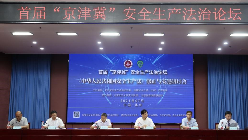 2021年7月10日,由北京安全生产法治研究会、中国矿业大学(北京)文法学院共同主办,北京化工大学、北京宣言律师事务所协办的首届“京津冀”安全生产法治论坛暨《中华人民共和国安全生产法》修正与实施学术研讨会,在中国矿业大学(北京)交流中心成功召开。来自原国家安全生产监督管理总局、应急管理部政策法规司、北京市市场监督管理局、中国安全生产科学研究院安全生产理论与法规标准研究所、北京市法学会、中共中央党校、清华大学、北京化工大学、北京中医药大学、首都师范大学、河北大学、中共天津市委党校、河北软件职业技术学院、华北科技学院、北京宣言律师事务所等单位的领导、专家50余人莅临本次会议。