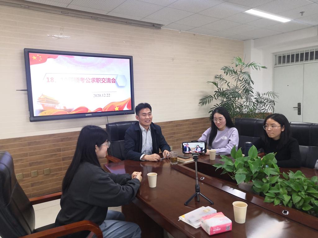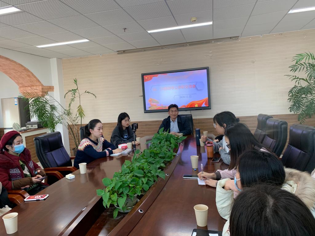 2021届毕业生就业创业,同时引导研二学生提前做好求职规划,12月22日,2018级翻译硕士党支部联合2019级翻译硕士党支部在逸夫楼1214举办了求职和考公经验交流会。院党委书记杨洪兵作为该支部的联系院领导出席活动。因部分学生寒假离校,会议采取了线上与线下相结合的模式,让已离校的同学也能参与到此次活动中来。会议由2018级翻译硕士党支部书记完颜园园主持。