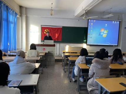 为深入学习贯彻党的十九届五中全会精神,回顾党成立九十九年来的光辉历程,激发爱党爱国情怀,坚定理想信念,文法学院英语本科党支部于1213日在学院路校区科技楼304举行“忆党史、猜红歌”主题党日活动。校党委副书记王忠强作为联系校领导出席了本次活动。