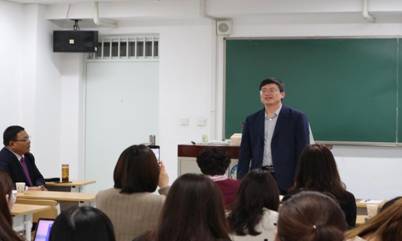 韩兆柱教授主张从生活中讲学术,从学术中看生活。他的学术演讲语言幽默、内容详实、旁征博引、深入浅出,向在座师生展示了学术和语言的魅力,让同学们在学科故事和生活智事中意识到提高问题意识的重要性。