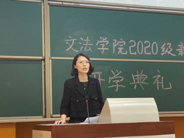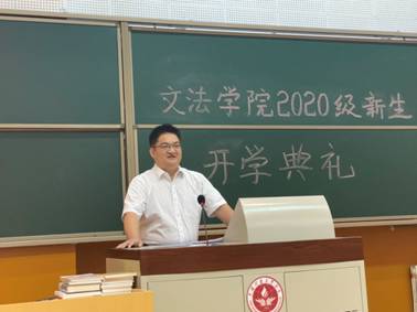 918日上午,文法学院2020级新生开学典礼在沙河校区教1-327举行。校党委副书记王忠强、文法学院院长殷召良、院党委书记杨洪兵、副院长许卉艳、副院长刘金程、副院长谭爽、外语系主任陈丽英、法学系主任李遐桢、行政管理系主任南锐、各系教师代表、班主任、辅导员、教学秘书出席了本次典礼。开学典礼由刘金程主持。