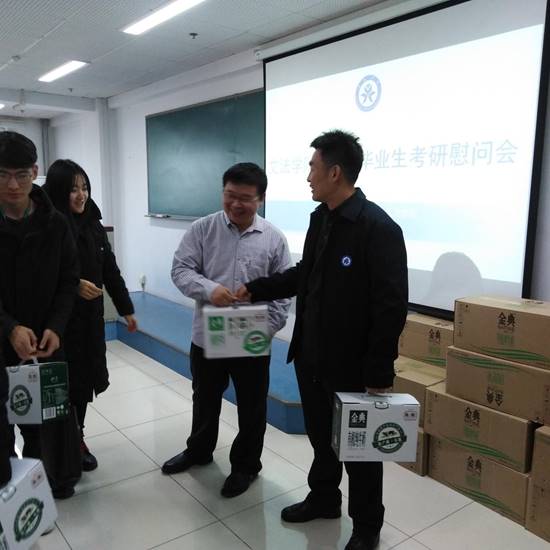 会后,殷召良和杨洪兵给每位备考的同学送上了营养品,衷心祝愿同学们能心想事成,旗开得胜,考上心仪的专业和学校。在座的同学们认真听取老师们的建议,并对学院的关怀表示感谢。