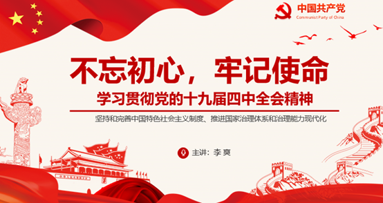 支部书记李爽带领大家学习了十九届四中全会精神。十九届四中全会通过了《中共中央关于坚持和完善中国特色社会主义制度、推进国家治理体系和治理能力现代化若干重大问题的决定》,指明了中国特色社会主义制度具有的13方面的“显著优势”,提出了一个总体目标,强调了要“坚持和完善”13个制度体系。党的十九届四中全会的召开意义重大,会议全面梳理和概括了一整套中国特色社会主义制度和国家治理体系,为中华民族迈向伟大复兴提供制度保证。