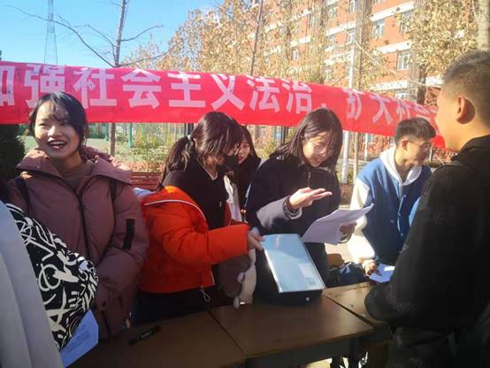 现场签名、发放传单和宪法手册、知识问答等各项活动有序展开,丰富多样的活动形式与精美的礼品吸引了广大同学的积极参与。