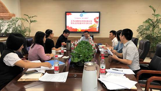 王忠强充分肯定了文法学院“不忘初心、牢记使命”主题教育取得的积极进展。他认为学院班子认真贯彻落实校党委的部署,高度重视,精心组织,稳步开展各项工作。王忠强强调,学院领导班子要以习近平新时代中国特色社会主义思想为指导,深入学习贯彻习近平总书记重要讲话和具体指示精神,教育引导广大师生党员增强“四个意识”、坚定“四个自信”、做到“两个维护”,高质量高水平推进主题教育。一要联系实际工作抓好理论学习,读原著、悟原理,深刻把握主题教育的总要求,学以致用,扎实做好学院各项工作。二是着眼重点难点进行调研整改,围绕学校和学院的办学定位,主动找差距,抓落实,不断推动学科建设、师资队伍建设、公共外语教学、本科人才培养改革等重点难点工作。三是以上率下加强组织领导,充分发挥领导班子表率引领作用,分类指导党支部、党员、全体师生开展主题教育,调动师生员工积极性、主动性、创造性,为学校学院发展凝心聚力。
