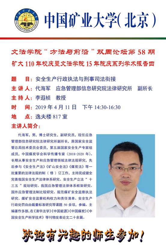 双周论坛丨文法学院成功举办“方法与前沿”双周论坛、矿大110年校庆暨15年院庆系列学术报告四:安全生产行政执法与刑事司法衔接