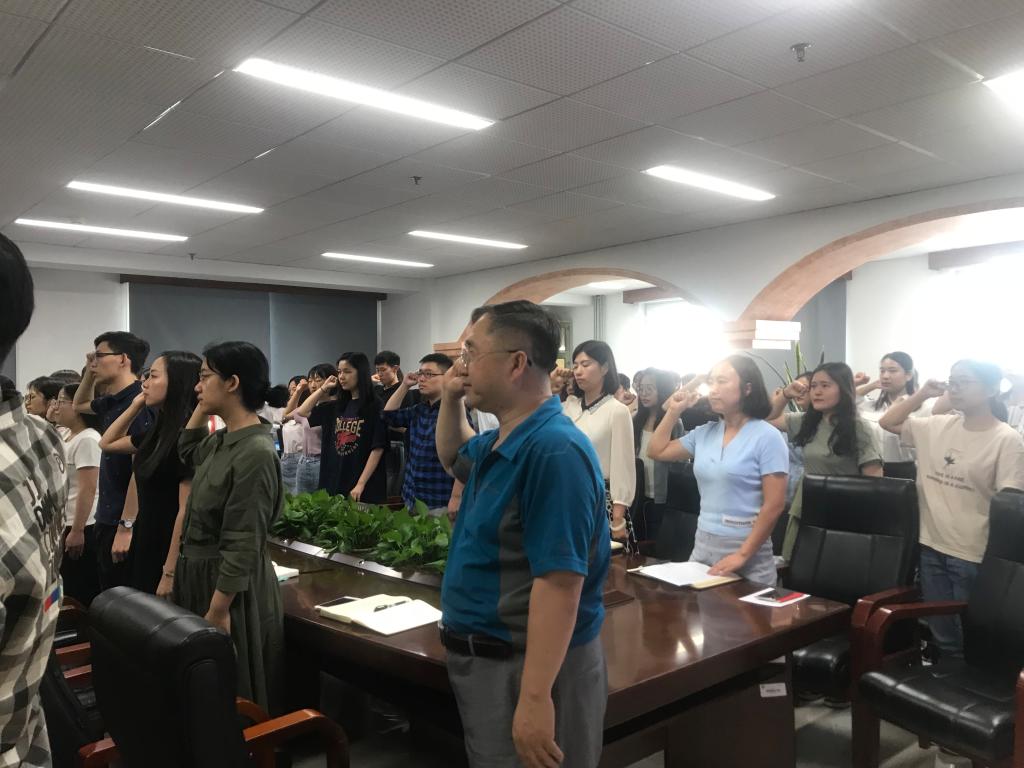 大会最后,同志们面对党旗庄严宣誓。铿锵有力的宣誓声,进一步加深了同志们对党的认识,坚定了理想信念,激发了工作和学习的斗志。