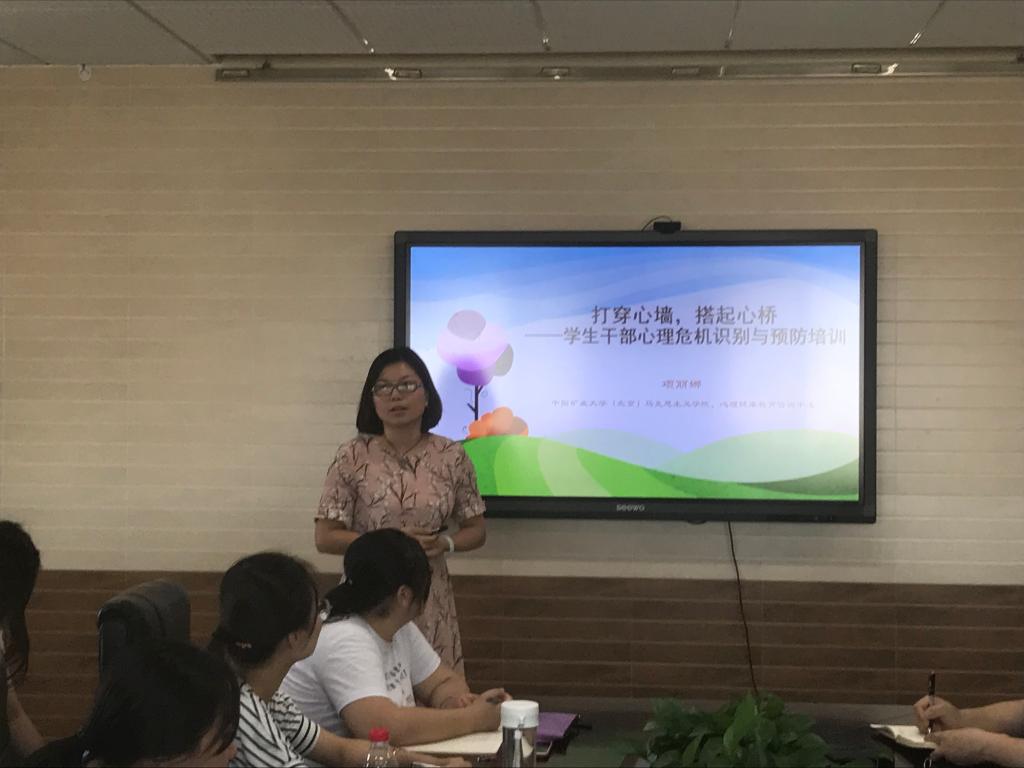 5月27日和6月1日,我院在两校区分别举办了学生心理危机预防与干预工作培训。本次培训由心理咨询中心项丽娜老师主讲,我院党委书记董会泽,全体辅导员老师和班干部、宿舍长共同参与培训。