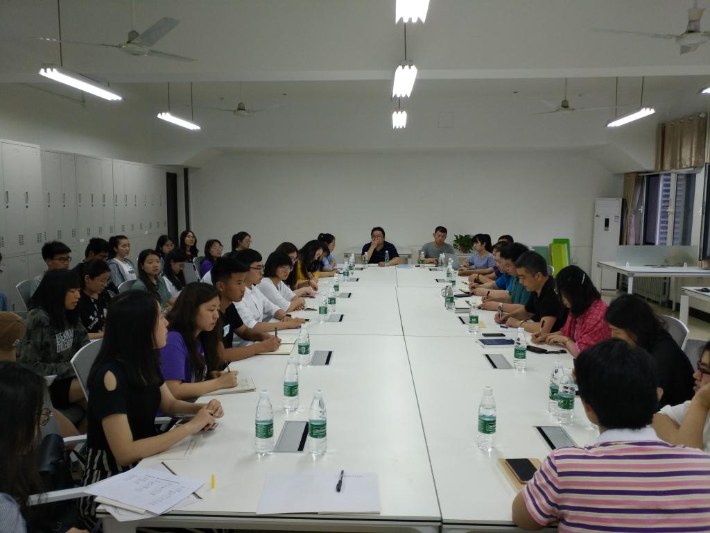 为进一步了解我院师生教学动态,加强优良学风建设,提高教学质量,配合本学期学院期中教学检查工作和学风建设活动的开展,5月30日晚七点,我院在沙河校区一教212召开17级本科生学生座谈会,广泛征求学生对教学及学生工作的意见和建议。院长殷召良,党委书记董会泽,副院长许卉艳、刘金程,行管、法学、英语系主任,17级本科班主任,辅导员及教学秘书,17级学生代表参加了座谈,座谈会由副院长刘金程主持。