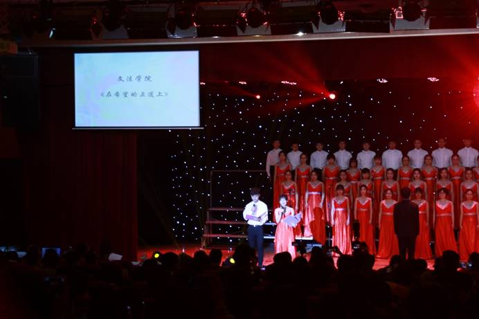 我院积极响应学校的号召,继承发扬一二九精神,不忘初心,用歌声颂国魂。在我院老师和同学的共同努力下,我们以默契的和声,向上的精神风貌在此次一二九大合唱活动中取得了三等奖,展现了文法学院的一二九情怀。