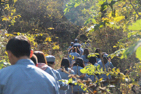 之后大家到达沙塘沟的北山,感受风景如画的山村,体验淳朴的风土民情,回到大自然的怀抱。一路上山路坎坷,大家互相帮助;路途瑶远,大家始终坚持,奋力向前。下山后,师生一起吃了忆苦思甜饭,体验当年抗日战士的生活。虽是粗茶淡饭,但大家都觉得这是最好的饭菜,因为那是军民一心、艰苦奋斗的见证!