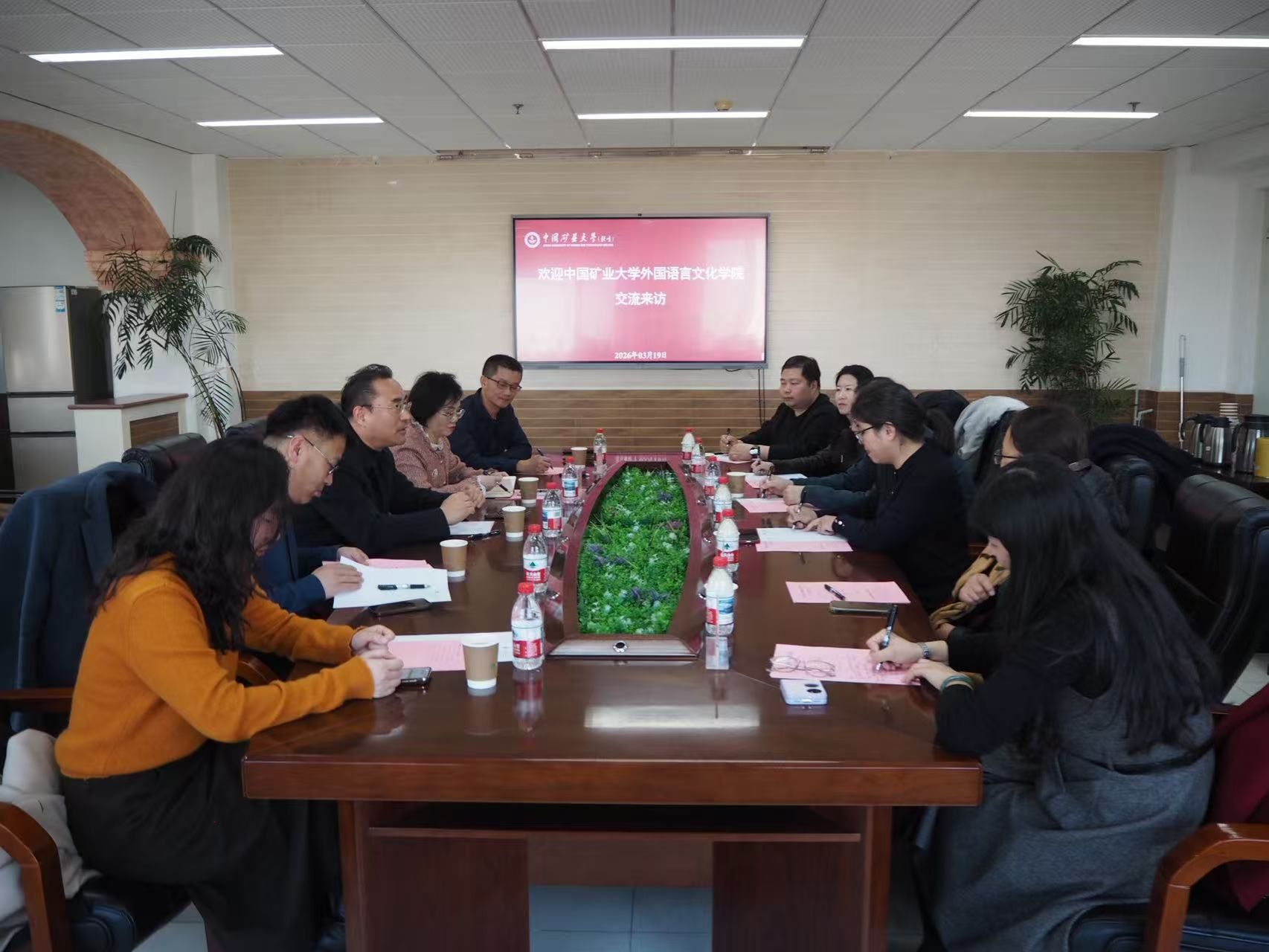 3月19日下午,中国矿业大学外国语言文化学院院长祖大庆一行来我院调研交流。我院副院长贾培培出席座谈会,双方就公共外语教学改革、外语学科建设、特色课程开发及国际化人才培养等议题进行了深入探讨。