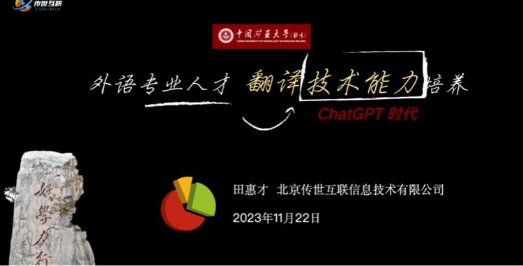 2023年11月22日,中国矿业大学(北京)文法学院第110期“方法与前沿”双周论坛在腾讯会议线上举行。本次论坛主题是“外语专业人才翻译技术能力培养”,报告由北京传世互联信息技术有限公司总经理田惠才主讲,文法学院外语系许卉艳教授主持,外语系师生参加了会议。
