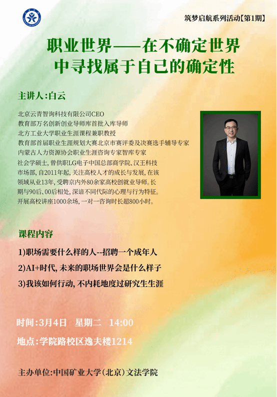 社会学硕士,曾供职LG电子中国总部商学院、汉王科技市场部,自2011年起,关注高校人才的成长与发展,在该领域从业13年,受聘京内外80余家高校创就业导师。长期与90后、00后相处,深谙不同代际的心理与行为特征。开展高校讲座1000余场,一对一咨询时长超800小时。