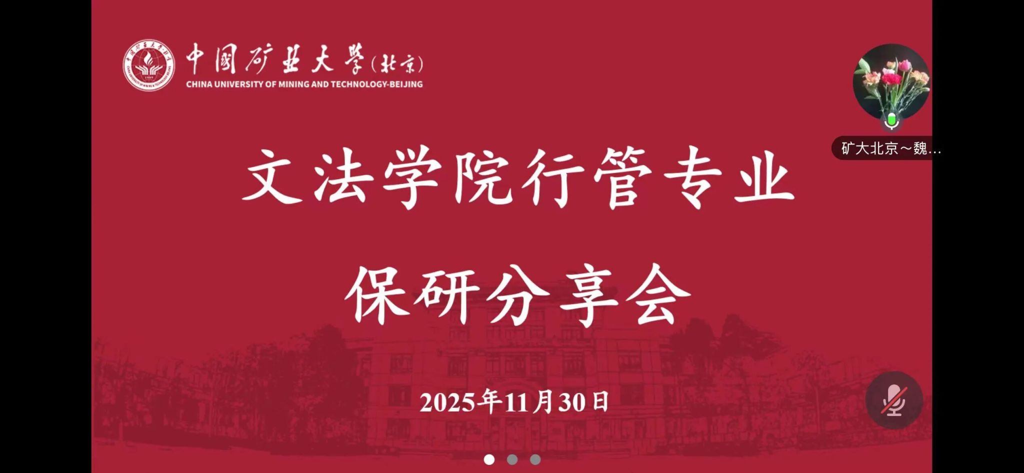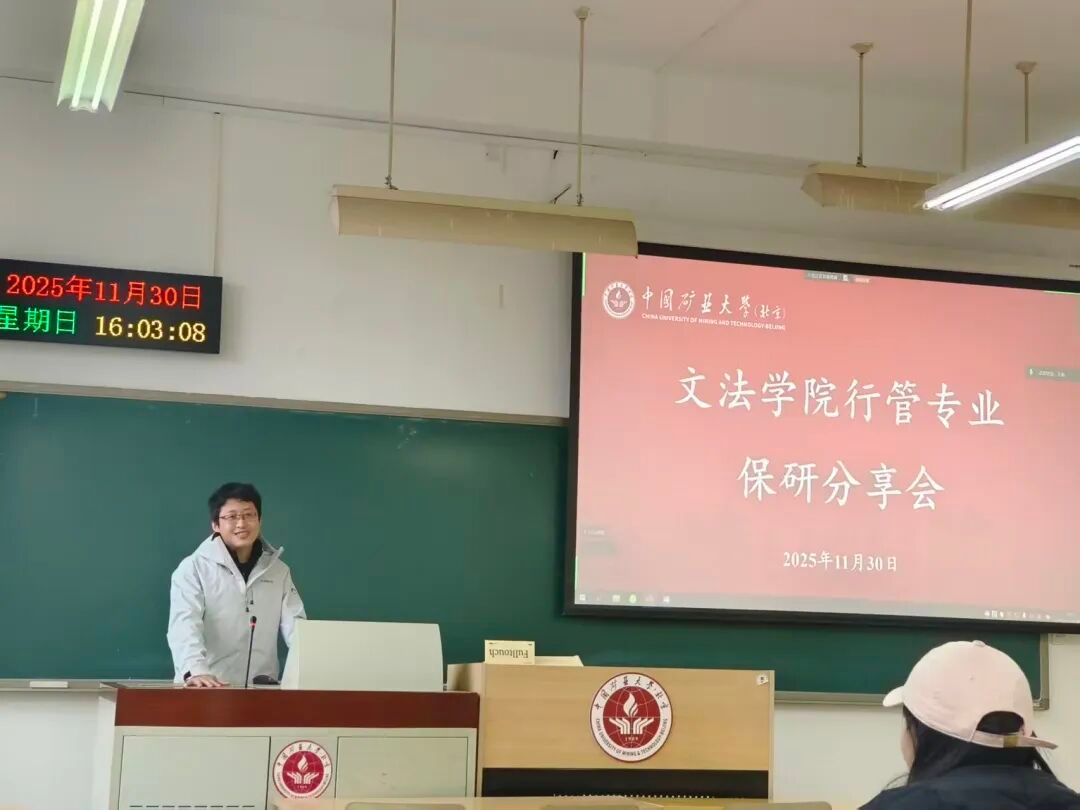 为增加行政管理专业同学对保研流程的了解,明晰未来发展规划,充分发挥优秀学子的榜样引领作用,文法学院于11月30日在学院路校区教学楼104举办行政管理专业保研经验分享会。2023级行政管理班班主任魏毅敏出席会议,线上线下共30余名同学参会,本次分享会由辅导员王振主持。