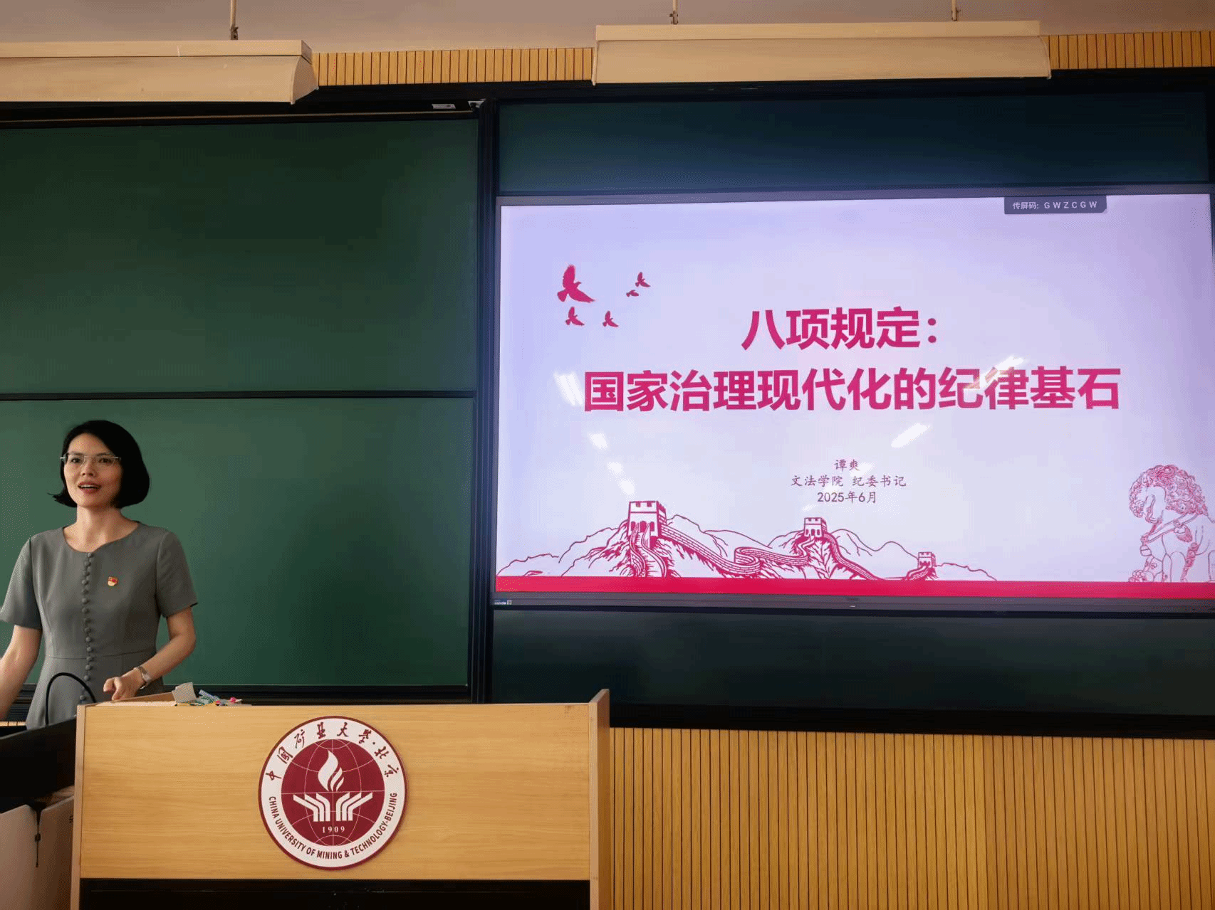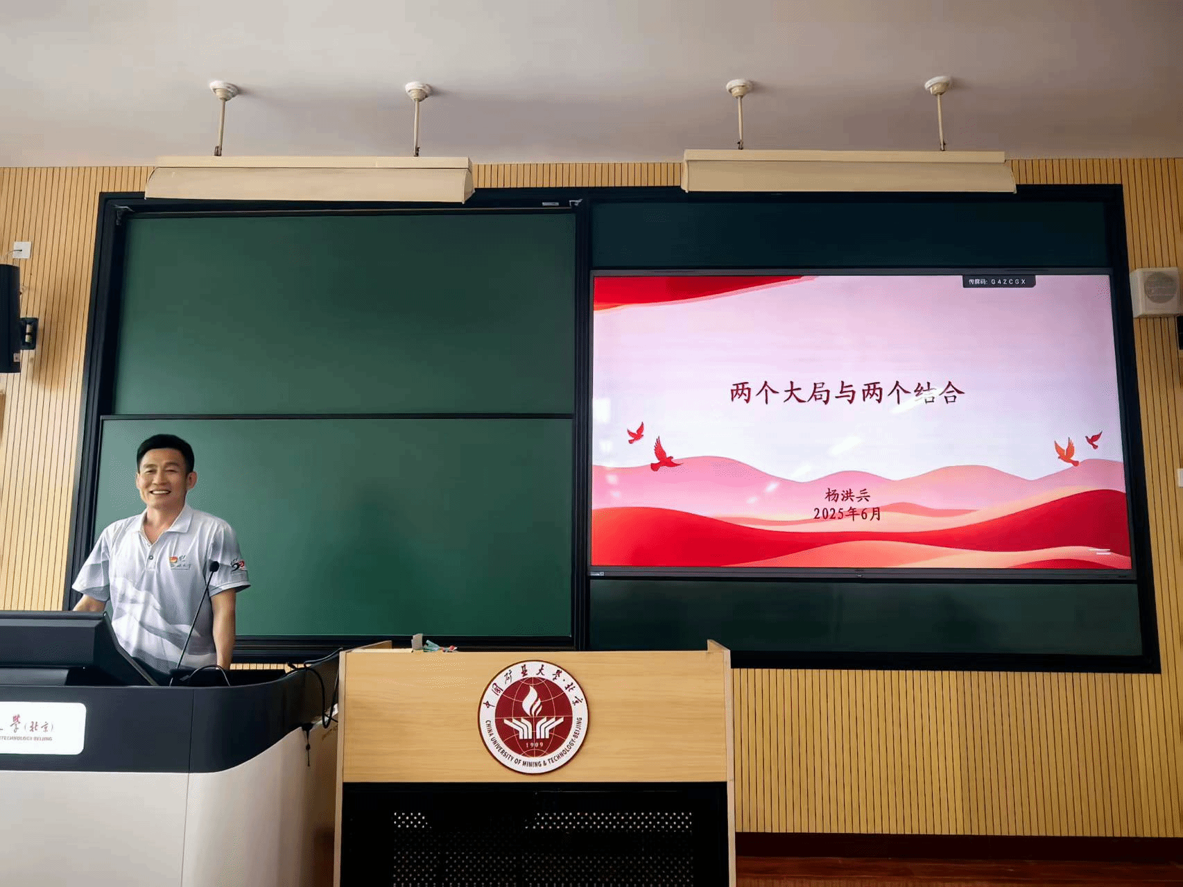 2025年6月27日,中国矿业大学(北京)文法学院在学院路校区教216教室举行2025届毕业生党员教育专题党课。学院党委书记杨洪兵、院长刘金程、副院长谭爽共同为毕业年级党员、新发展党员及学生党支部书记上一堂思想深刻的“最后一课”,毕业生辅导员王振主持会议。