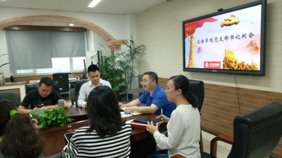 2018年9月27日,文法学院于逸夫楼1214召开了本学期第一次党支部书记例会,部署本学期的党建工作。院党委书记董会泽,各教师及学生党支部书记参加本次会议,会议由院党委秘书董凤姣主持。