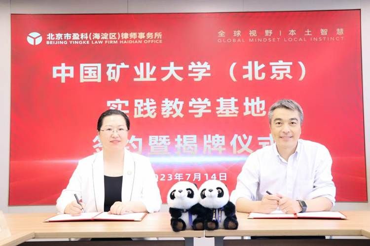 2023年7月14日上午,中国矿业大学(北京)文法学院与北京市盈科(海淀区)律师事务所实践教学基地签约暨挂牌仪式在盈科海淀律所举行。中国矿业大学(北京)文法学院院长刘金程教授、副院长贾培培副教授、公共管理系副主任谢起慧副教授、法学系副主任朱梦妮副教授、法学系教师张璐、张榆青、刘宇,以及盈科海淀律所执行主任赵翠莲、政府与军事法律顾问事务部主任朱东权、副主任滕芸芸、中国政法大学周鹏龙博士、王嘉文博士、李月博士等参加了此次活动。