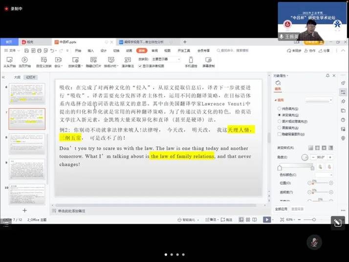 2021年5月31日,文法学院第七届“中吕杯”研究生学术交流论坛成功举办。文法学院院长殷召良、院党委书记杨洪兵、副院长许卉艳、刘金程、谭爽及部分教师出席了本次论坛。本届“中吕杯”学术交流论坛由许卉艳主持。