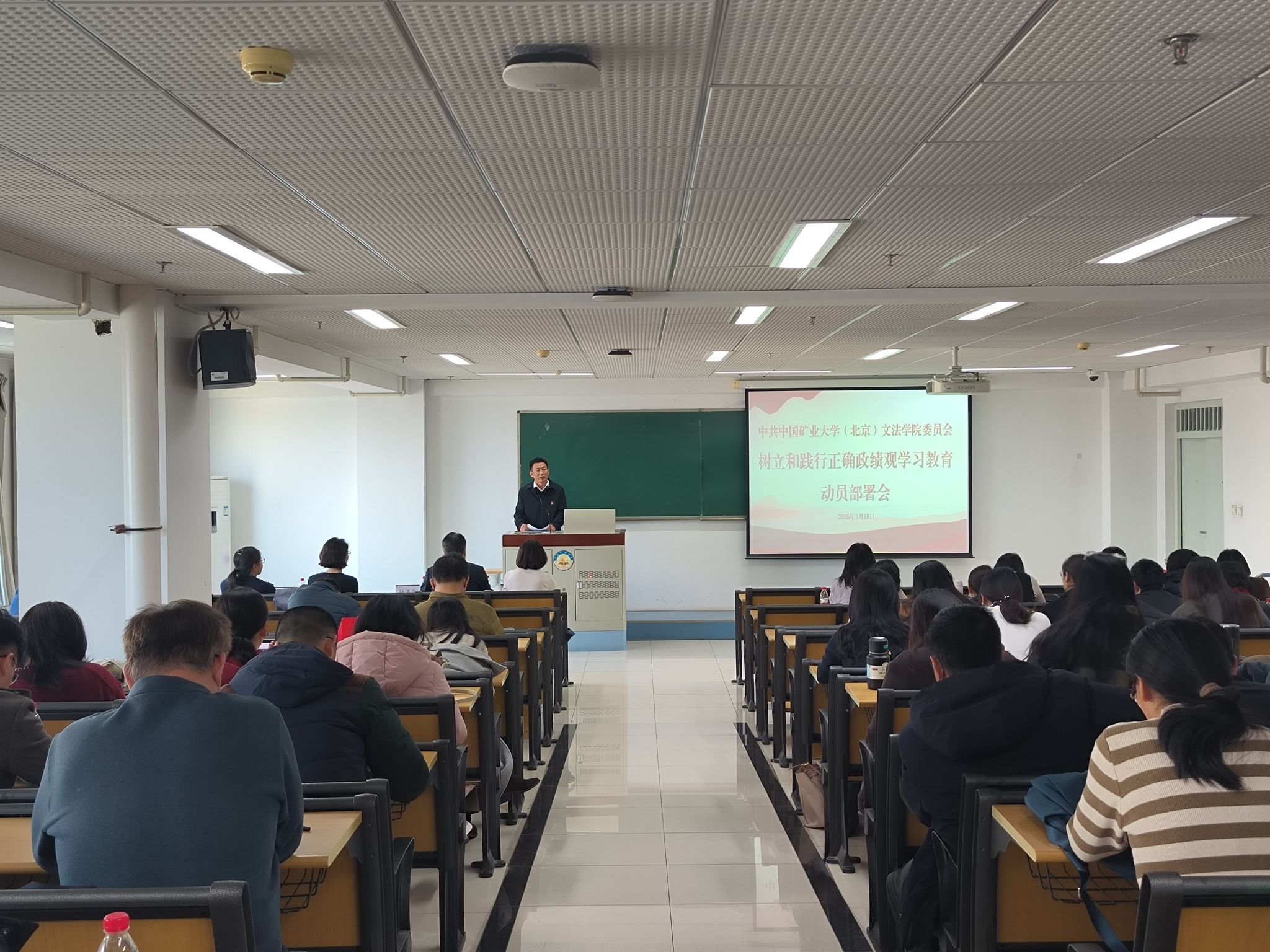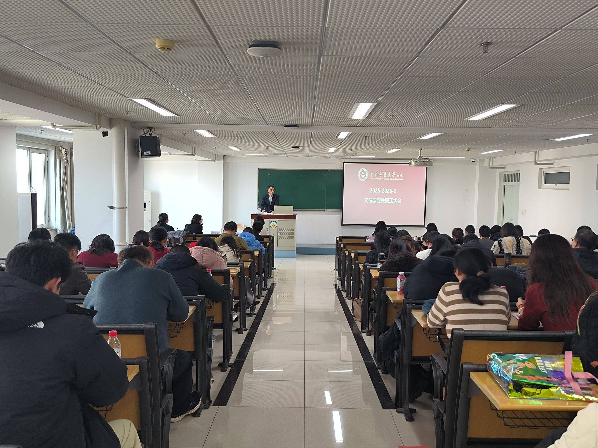 2026年1月7日,中国矿业大学(北京)文法学院英语本科党支部于逸夫楼1214会议室召开“感悟新年贺词,践行时代使命”主题党日活动。副校长谭凯出席活动并讲话。文法学院党委书记杨洪兵、副书记董凤姣、英语本科党支部成员参加活动,英...
