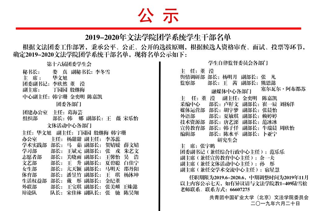 公示丨2019-2020年文法学院团学系统学生干部名单