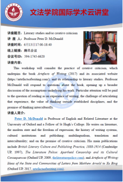 牛津大学Peter D. McDonald教授为我院外语系研究生作题为“Literary studies and/or creative criticism...